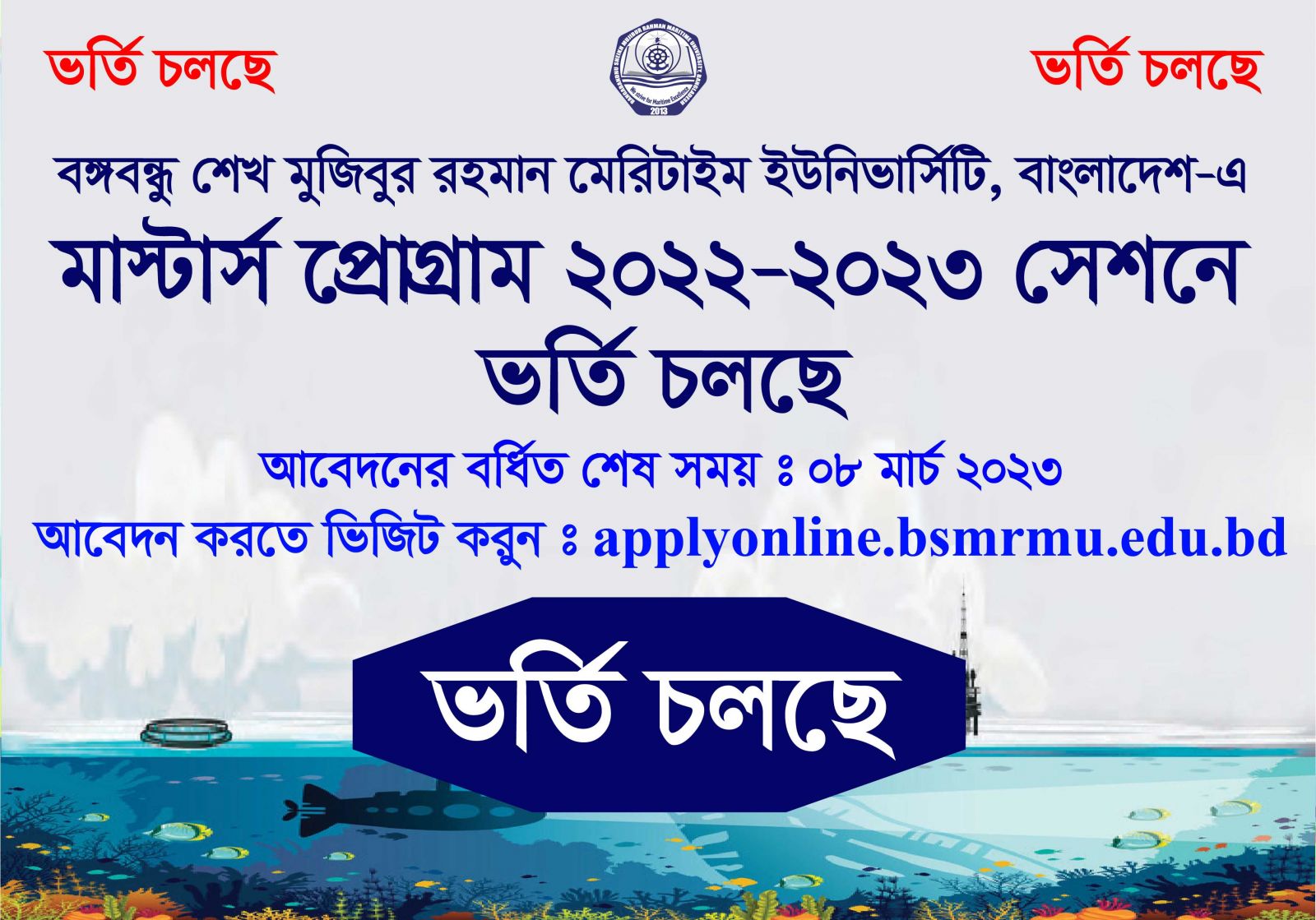 মাস্টার্স প্রোগ্রাম ২০২২-২০২৩ সেশনে আবেদনের সময়সীমা ০৮ মার্চ ২০২৩ পর্যন্ত বর্ধিত করা হয়েছে